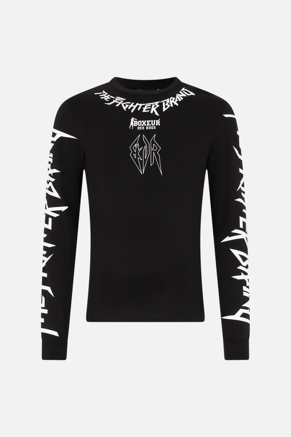 T-Shirt Nera A Manica Lunga Con Stampe Black